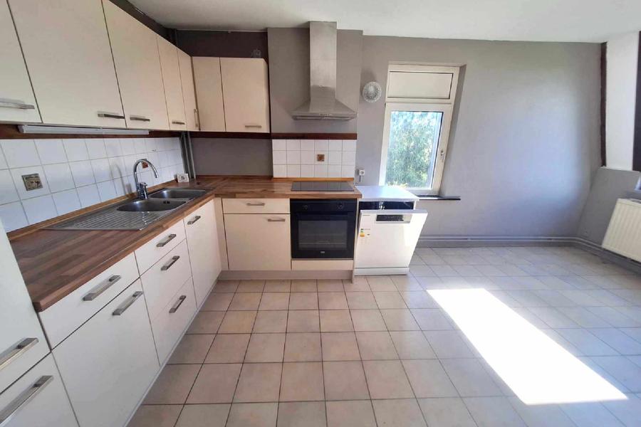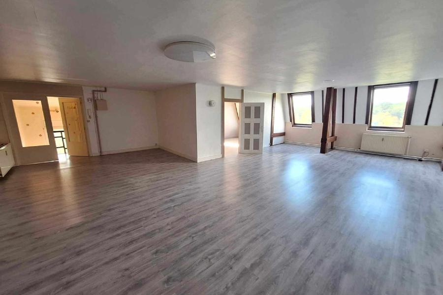 Situé au sein d'une magnifique propriété, cet appartement situé au 2ème étage se compose d'un hall d'entrée avec WC et vestiaire/buanderie, spacieux living, cuisine équipée. Le hall de nuit mène à 3 chambres avec évier, 2 salles de bains et coin bureau. Charges : forfait de 150€ pour le chauffage (CC mazout) et 50€ pour l'eau.