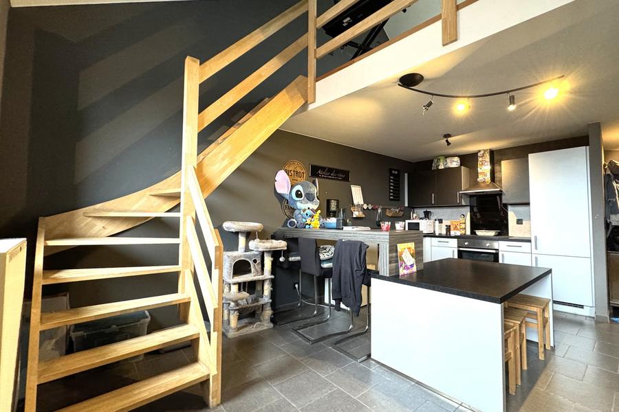 Situé au second étage sans ascenseur, il se compose d'un séjour lumineux avec une cuisine équipée ouverte, une salle de bain, et deux chambres en mezzanine.