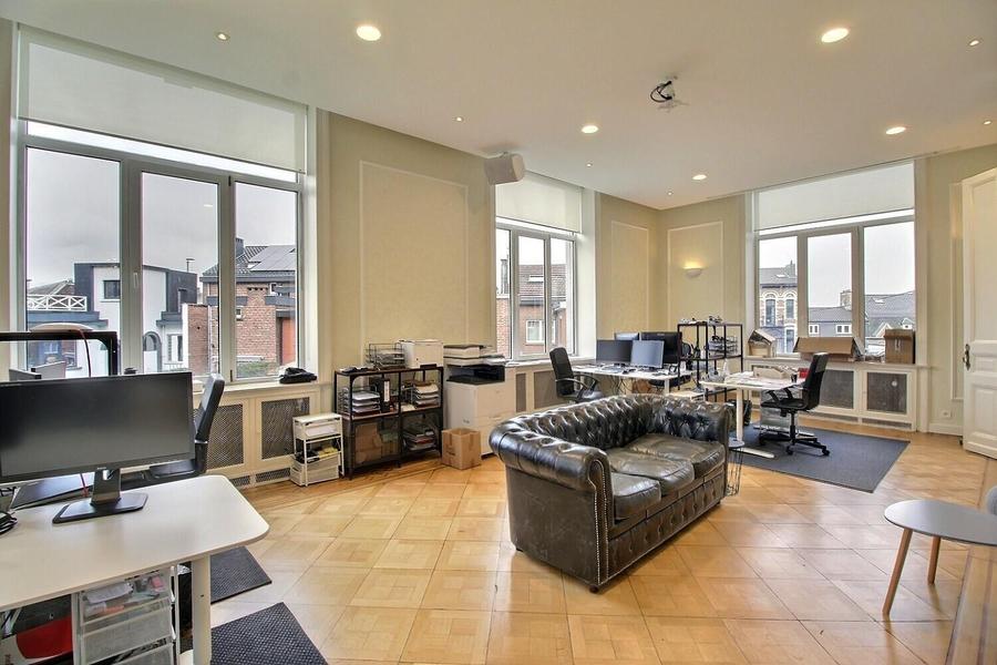 VERVIERS - AVENUE PELTZER : Espace de bureaux polyvalent entièrement rénové dans un bâtiment de standing, très lumineux avec de beaux volumes et idéalement situé, à 2 pas des services hospitaliers verviétois, des écoles, des commerces, de l'autoroute et de la gare. Bien desservi par les transports en commun, accès aisé. Exploitable immédiatement et libre au 1er juin. Sa surface d'environ 180 m² (+ caves à disposition) conviendra parfaitement pour votre profession libérale ou votre cabinet médical. Éléments techniques : Châssis PVC double vitrage, chauffage central au gaz, système de sonorisation, projecteur avec écran intégré dans le plafond, télévision pour les réunions, système d'alarme, portail électrique et interphone. Énergies indépendantes, compteurs séparés (eau, gaz, électricité), bonne isolation, connexion internet dans toutes les pièces. Charges communes de 55€/mois pour l'entretien des extérieurs. Infos et visites via l’agence CENTURY 21 Or Bleu par email à l’adresse info@century21orbleu.be ou par téléphone au 087 22 00 21
