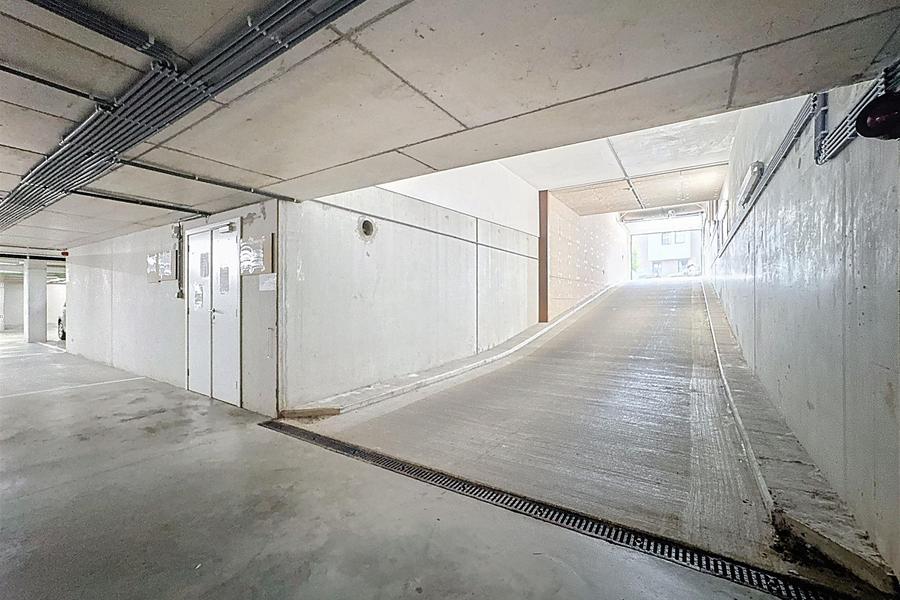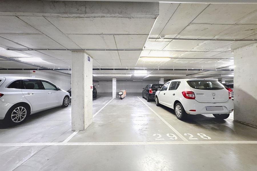 Emplacement de parking situé au sous-sol d’un immeuble à appartements, offrant sécurité et praticité.
