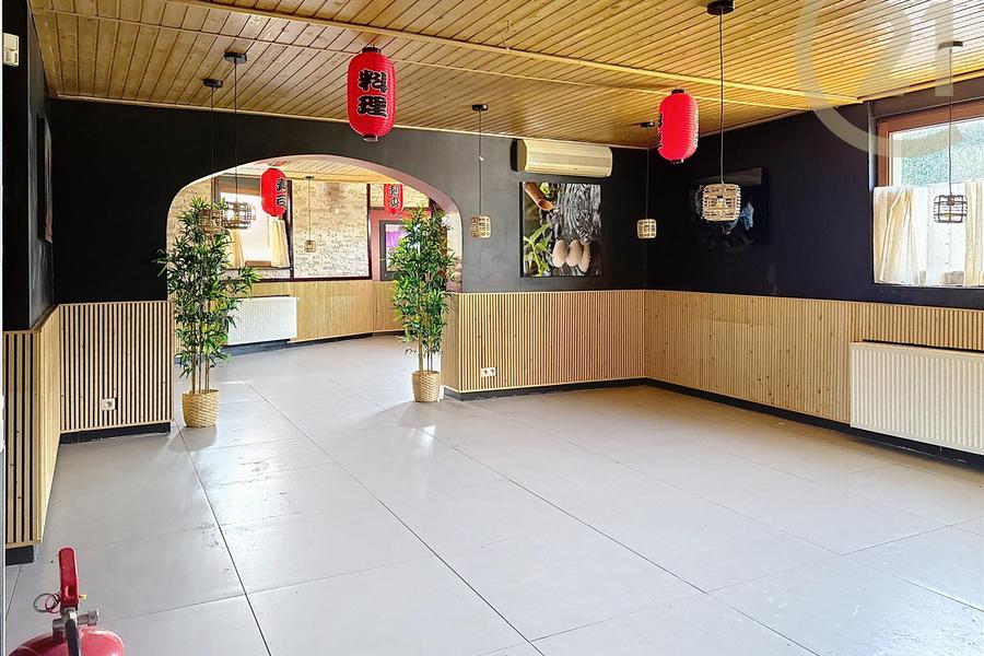 Le bien dégage une atmosphère chaleureuse grâce aux accents en bois et comprend un grand espace ouvert, un bar aménagé, une cuisine fonctionnelle et des toilettes séparées pour dames et messieurs. Idéal pour accueillir vos clients ou organiser des événements.