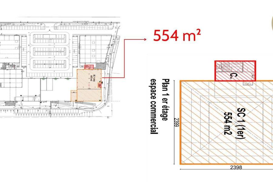 Surface commerciale aménagée située au premier étage de 554m².