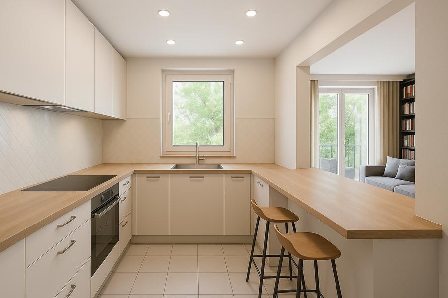 Cuisine séparée de 4,8 m², fonctionnelle et bien agencée