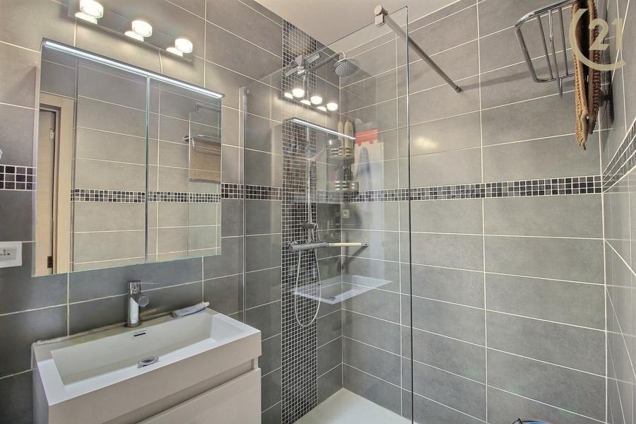 La salle de bains de 3,4 m² dispose d’une douche et abrite la chaudière Vaillant, remplacée récemment en 2023–2024. Un WC séparé de 1 m² est équipé de la centrale de traitement de l’air, système qui couvre l’ensemble de l’appartement. Le bien comprend également un hall de jour de 2 m² et un hall de nuit de 2,3 m². Une cave privative de 6,5 m² complète l’ensemble.