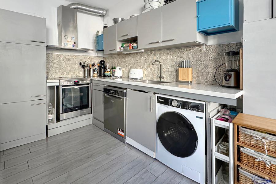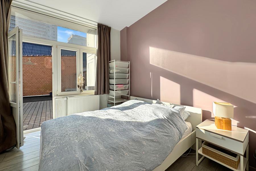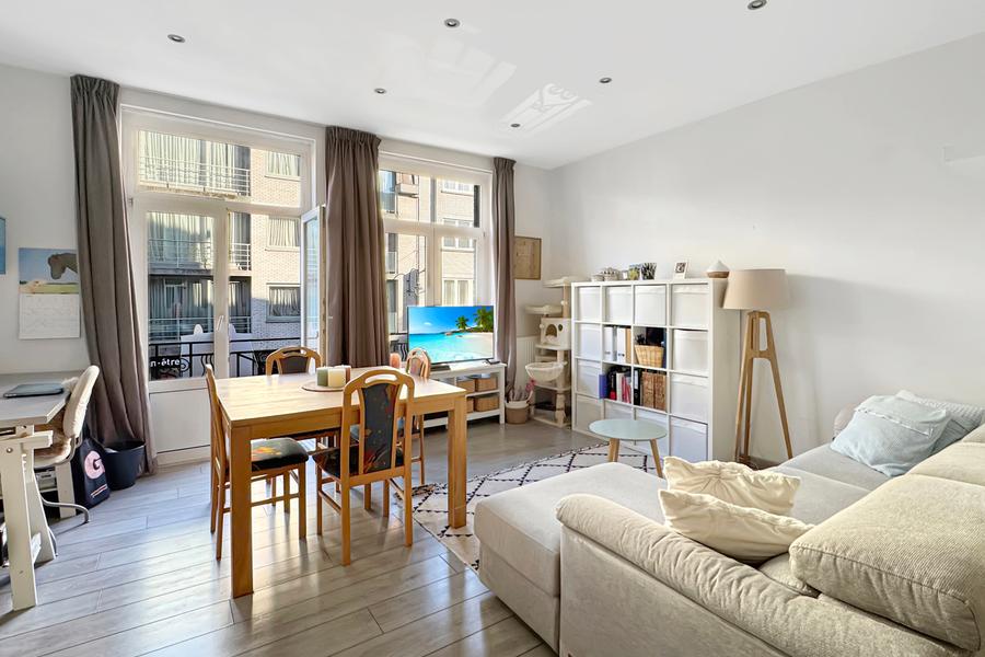 Laeken, rue De Wand 132: au 1er étage d'un petit immeuble sans ascenseur, appartement composé d'un séjour avec cuisine ouverte, une chambre, salle de bains avec wc et terrasse. Chauffage individuel gaz, charges communes uniquement assurance bâtiment et électricité des communs. Infos et visites CENTURY 21 Best House 02 268 21 50