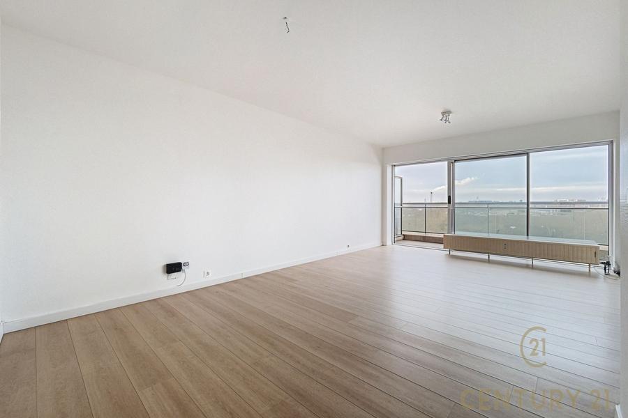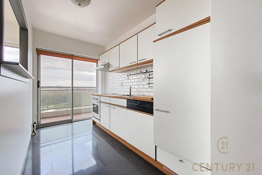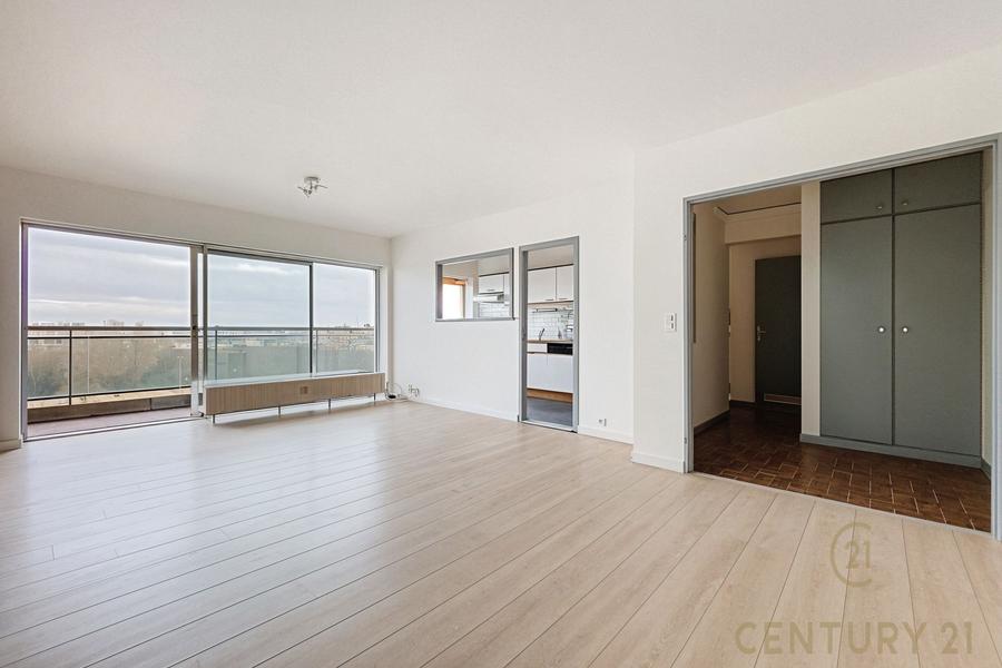 Il se compose de 2 belles chambres, d'un lumineux séjour avec une cuisine ouverte, d'une salle de bain, d'un wc séparé et d'une belle terrasse faisant la longueur de l'appartement offrant une vue exceptionnelle sur Bruxelles. Une cave est également disponible en sous-sol.