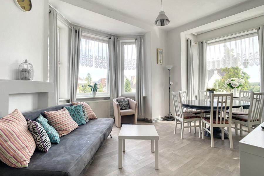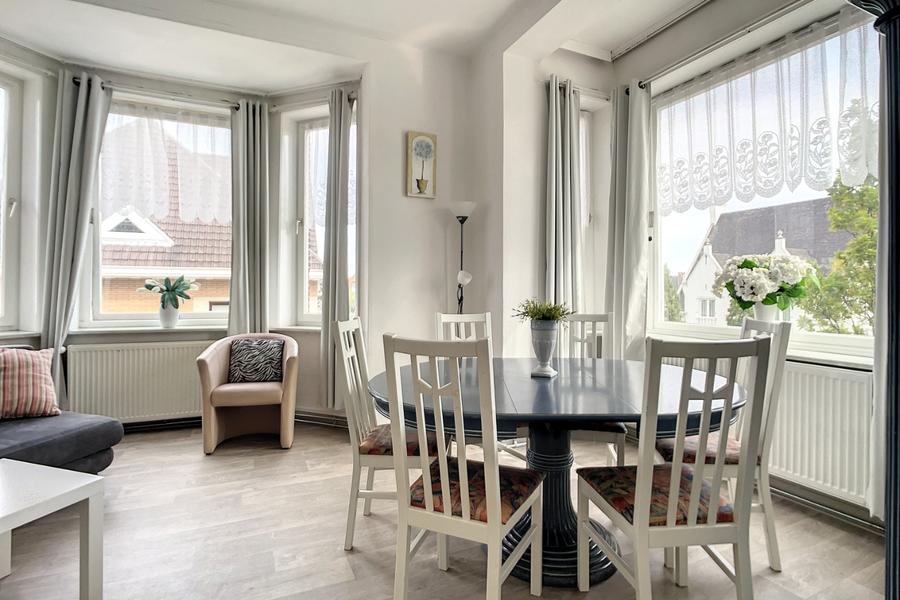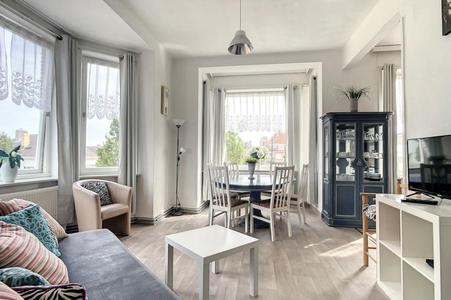 Appartement prêt à rentrer, situé au premier étage d’une petite résidence près du centre de La Panne. L’appartement comprend: entrée, living, salle à manger, cuisine équipée, deux grandes chambres, SDB avec toilette, douche et lavabo. L'appartement se situe à quelques minutes de la mer et du centre de La Panne. Réf. Soucis au Vent 0101