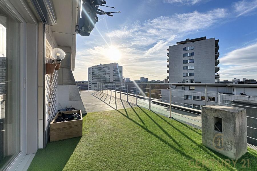 Avec sa terrasse XXL, cet appartement offre un confort et une élégance incomparables, orienté plein Sud-Ouest, avec une vue imprenable sur Bruxelles.
