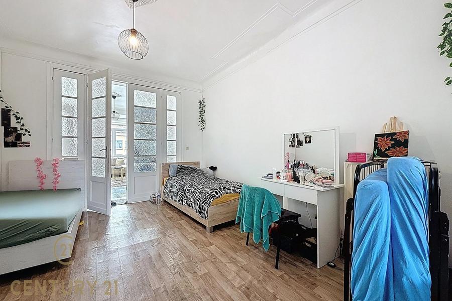 Le duplex dispose de cinq chambres, réparties sur deux niveaux, offrant à chacun son espace et son intimité. Vous y trouverez également deux salles de douches, idéales pour le confort d'une grande famille ou pour une colocation, ainsi qu’un WC séparé.