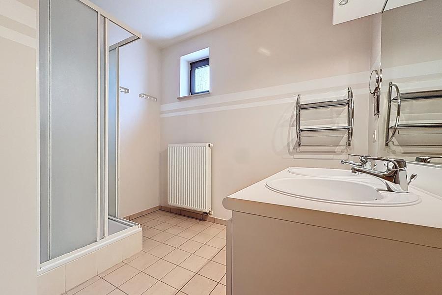 Il se compose d’un spacieux séjour avec cuisine ouverte, créant un espace de vie convivial et moderne, d’un hall d’entrée, de deux chambres généreuses, d’une grande salle de douche, de deux WC, ainsi que d’une petite buanderie.