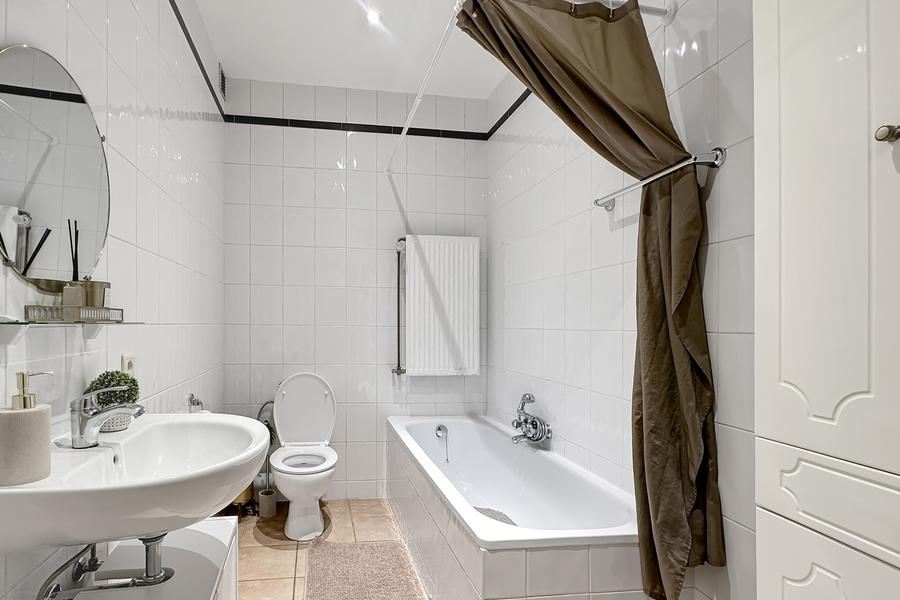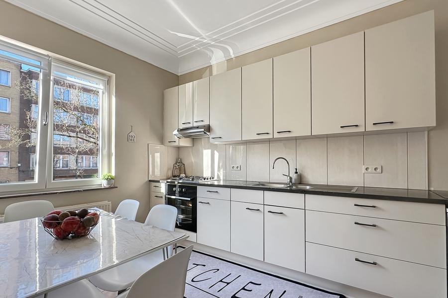 Au 1er étage sans ascenseur d'un petit immeuble, découvrez cet appartement lumineux offrant un salon de 16,5 m², une cuisine équipée de 10 m², 2 chambres (16 et 12 m²), une salle de bains avec WC, buanderie pour les machines, hall d'entrée. Terrasse de 3 m² à l'arrière accessible par une des chambres. Cave nr 4 au sous-sol. Porte blindée, parlophone, châssis PVC double vitrage, chauffage central gaz individuel, électricité conforme jusqu'en 2032. Loué actuellement (loyer 936,34€). Infos et visites CENTURY 21 Best House 02 268 21 50