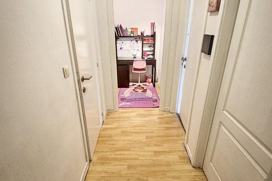 Ganshoren quartier Basilique à proximité des transports en commun et des commerces. Bel appartement avec 2 chambres , situé au 2 ème étage d'un immeuble composée: Hall d'entrée, grand living avec parquet (± 31m²), Cuisine équipée (four, taque électrique, hotte, évier, emplacement machine à laver). Hall de nuit avec 2 chambres de (± 14m² en 16²) dont une avec terrasse(+/-3m² avec débarra extérieur). Salle de bains avec bain et lavabo), débarra et wc séparé .Charges communes 500€ /trimestre (eau froide, ascenseur, entretien), Divers: double vitrage, PEB:D- . Loué actuellement au prix de 900€ + 120€ de provision de charges bail entrée 16/08/2021. Garage box fermé inclus! Infos et visites: Century 21 Invest: 02 523 21 21