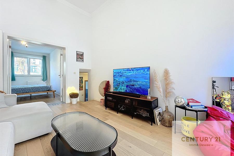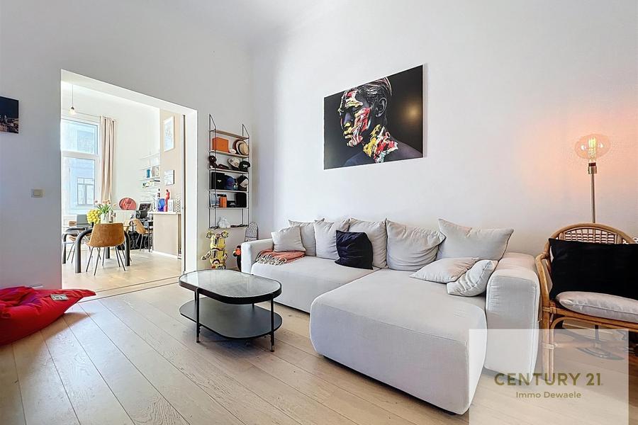Idéalement situé entre l'avenue Molière et Vanderkindere dans une ancienne maison de maître, Century 21 Immo Dewaele est ravi de vous présenter ce très bel appartement une chambre. Au premier étage d'une petite copropriété avec peu de charges, cet appartement a été entièrement rénové entre 2013 et 2018. Il se compose comme suit: hall d'entrée, cuisine américaine, salon, salle à manger, chambre, salle de douches. Une cave au sous-sol complète le bien. PEB E+ 221 kWh/m².an.