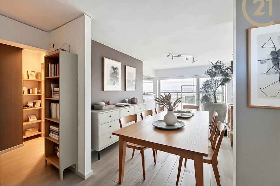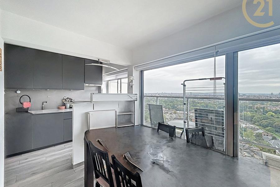 Au 22ᵉ étage d’un immeuble idéalement situé, découvrez ce magnifique appartement de trois chambres offrant une vue à couper le souffle sur tout Bruxelles. Lumineux et spacieux, il séduit dès l’entrée par son vaste séjour de ±30 m² baigné de lumière, ouvert sur une cuisine conviviale, parfaite pour partager des moments en famille ou entre amis. Les trois chambres, confortables et bien agencées (±13 m², ±9 m² et ±9 m²), offrent un espace de vie agréable et fonctionnel. L’appartement comprend également une salle de douche moderne, deux WC, ainsi que plusieurs espaces de rangement.