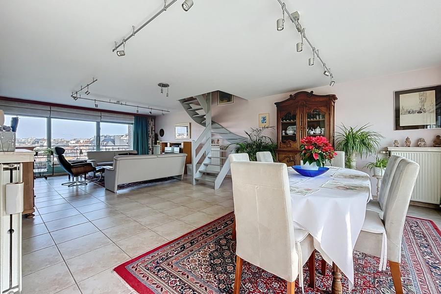 Grand appartement ensoleillé près des magasins et à qq minutes à pied de la plage de Coxyde. L'appartement comprend: entrée, wc, grand living avec salle à manger, cuisine séparée, deux grandes terrasses ensoleillées, buanderie. Etage: trois chambres et deux SDB. Cave privative incluse. Possibilité d'acquérir deux garages B19 - B20 dans la résidence (45.000 euro par garage). L'appartement se vend meublé. Réf. Kiwi 0401