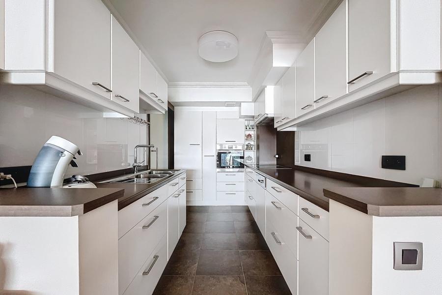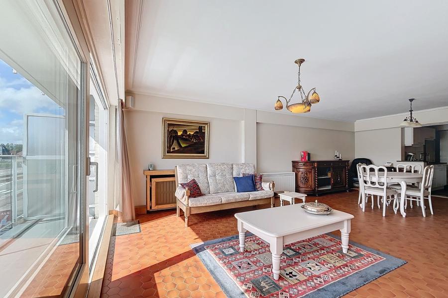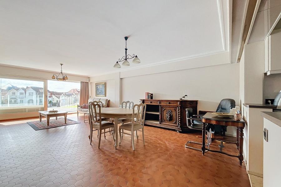 -Appartement de 3 chambres de 120m² et EPB de 128.Cet appartement lumineux est situé à 350m de la plage. Entrée spacieuse, porte coupe-feu et anti-effraction.Séjour avec une grande baie vitrée coulissante avec terrasse et un store électrique offrant un agréable espace de vie de 40m² orienté sud-est (voir plan).-Belle cuisine ouverte équipée moderne avec tous les appareils contemporains tels que l'induction, le lave-vaisselle, le four à convection, le micro-ondes et les placards de pharmacie coulissants.-Séparée par une porte coulissante en verre, une pièce de rangement attenante avec espace pour machine à laver, sèche-linge et congélateur, avec de nombreuses étagères mobiles.-Nouvelle salle de bain avec douche et lavabo. Au sous-sol, une armoire de rangement supplémentaire et un local à vélos commun, possibilité d'acheter un parking souterrain 25.000 €. Ref Solaria 101