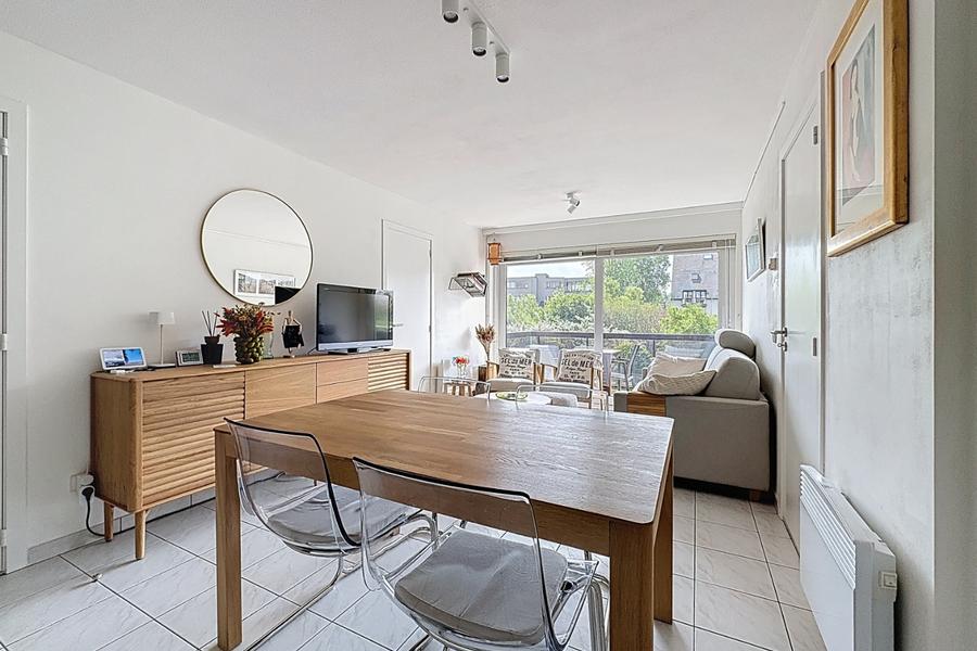 Bel appartement situé près de la réserve naturelle et à 300m de la plage. L'appartement ensoleillé se trouve au premier étage et comprend: entrée, cuisine équipée, living et salle à manger, une grande chambre et deux petites chambres, SDB, terrasse ensoleillée. Possibilité d'acquérir un emplacement (62) au -1, prix: 30.000 euro. Réf. Promenade F0104