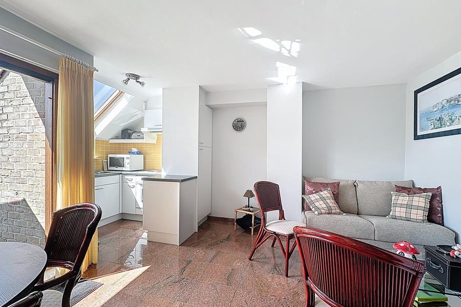 Appartement calme et ensoleillé à proximité de la plage, de la digue et de la mer. L'appartement se comprend: entrée avec WC, séjour ensoleillé avec grande terrasse ensoleillée, kitchenette équipée ouverte, chambre à coucher, salle de bains (double lavabo et douche) et cave privée. Chauffage central au gaz naturel.