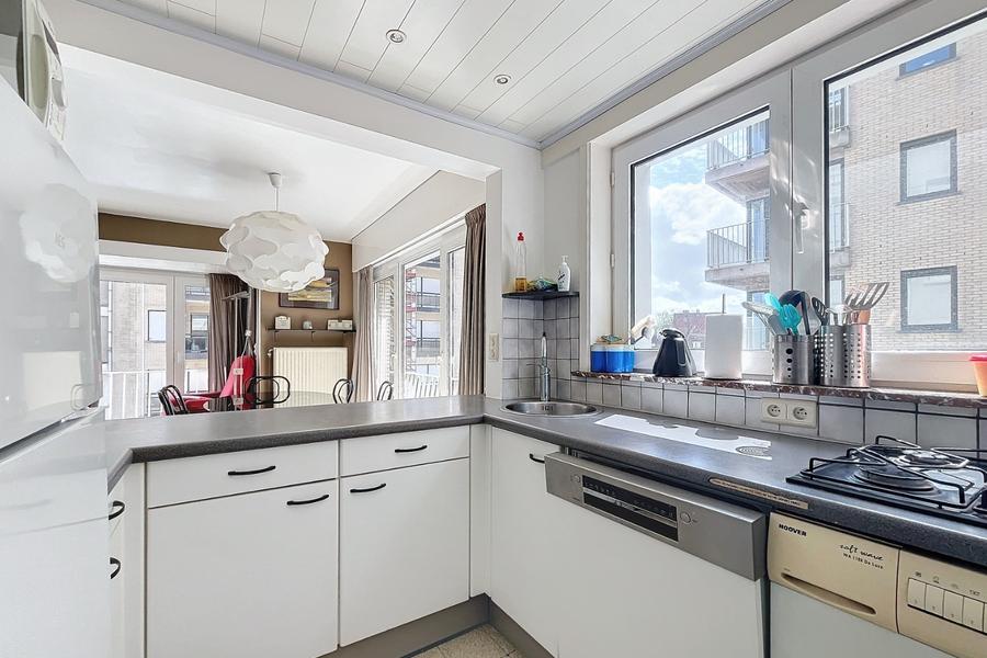 Cet appartement lumineux est situé au calme et bénéfice d'une vue latérale sur la mer. La disposition est la suivante : hall d'entrée, séjour avec cuisine équipée, 3 chambres, salle de bains et débarras. Terrasse à l'arrière de la chambre. En bas, il y a une cave individuelle et un local à vélos commun. Ref. Jeux d'eau 01.01