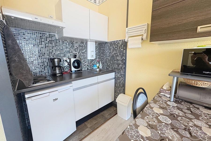 Dans la résidence Zeegalm à Middelkerke, vous trouverez ce studio confortable, idéal comme résidence de vacances ou investissement. En entrant, vous arrivez dans un hall d'entrée qui donne accès à la salle de bains avec douche et toilettes. Vous continuez ensuite vers l'espace de vie ouvert avec cuisine, où vous profitez immédiatement d'une agréable luminosité. Depuis l'espace de vie, vous accédez à la terrasse qui donne sur la mer, un endroit merveilleux pour se détendre et profiter de la vue.