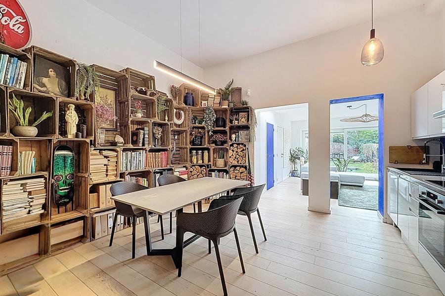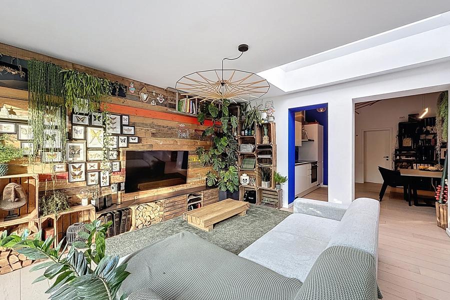 🛋️ Un espace de vie au rez - de - chaussée, lumineux grâce à une large baie vitrée donnant directement sur le jardin.