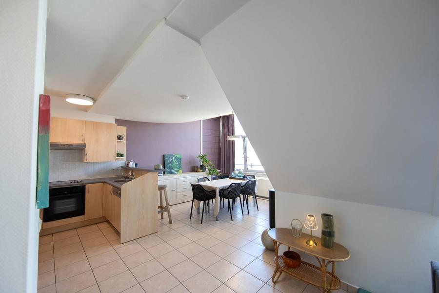 Appartement clé en main de type traversant situé au centre de la rue commerçante de Nieuport-bain, à proximité de la place Saint-Bernard, de la plage et de la mer.Disposition: entrée, toilette d'invité, séjour spacieux avec cuisine ouverte, débarras séparé, salle de bain avec double lavabo et baignoire, 2 chambres à coucher et débarras au sous-sol inclus. L'appertement est situé au dernier étage de la résidence Gauguin, à noter que l'ascenseur ne va que jusqu'au 5ème étage et que le dernier étage est accessible uniquement par un escalier.Il y a également un local à vélos commun.