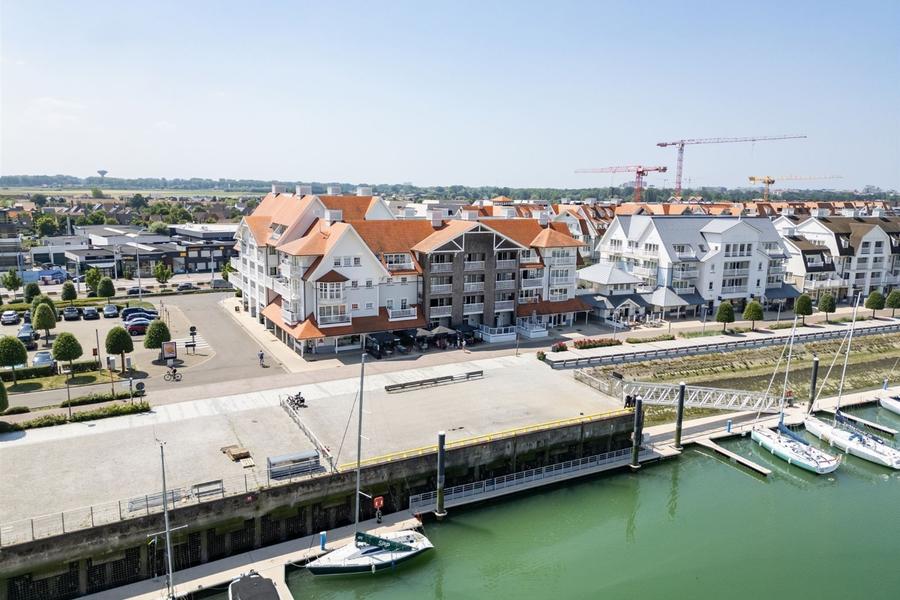 Appartement clé en main situé sur port de plaisance avec vue sur le chenal et la promenade de Nieuport à 2,5 km de la mer. Disposition: hall d'entrée, toilette séparée, séjour lumineux avec cuisine ouverte, terrasse spacieuse avec vue sur le port de plaisance, débarras séparé, 2 chambres à coucher, dont une avec accès à la 2ème terrasse avec une terrasse orientée au sud, salle de bain avec baignoire et lavabo.Possibilité d'acheter un box de garage simple dans le même bâtiment au niveau -1, dimensions : 5m30 x 3m15.Vendu sous forme de bail emphytéotique, construit dans une zone portuaire.
