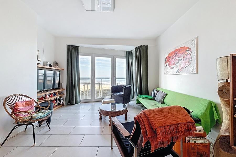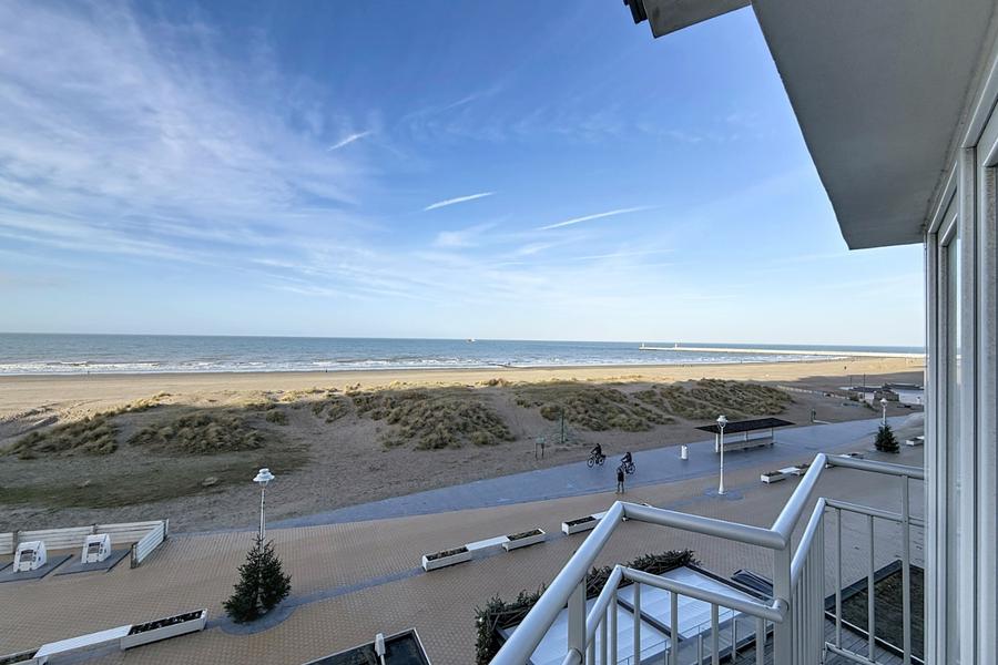 Un bel appartement de type traversant offrant une magnifique vue sur la mer à Nieuport.Situé au troisième étage, l’appartement se compose de : un hall d’entrée spacieux, une salle à manger, une cuisine équipée, un séjour bénéficiant d’une belle luminosité et d’une vue sur la mer, deux chambres à coucher de belle taille, une toilette séparée et une salle de bains avec simple lavabo et douche. Une cave privative située au sous-sol de l’immeuble est incluse.