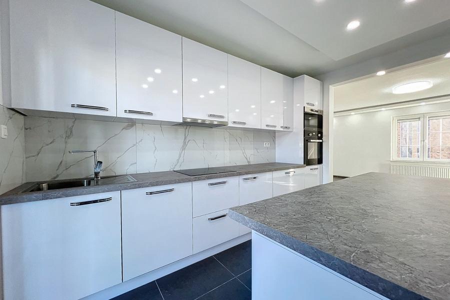 Appartement spacieux et moderne entièrement rénové, situé au premier étage de cette habitation en copropriété de petite taille, à proximité de la Grand-Place, des transports en commun et des commerces de la ville de Nieuport.Disposition: cage d'escalier, hall d'entrée, toilettes invités, séjour spacieux avec cuisine ouverte, terrasse, 3 chambres à coucher et une salle de bain avec toilettes.L'appartement a été aménagé selon les normes BEN et est équipé de toutes les commodités modernes. Il y a un débarras commun situé sur la cour. Possibilité d'acheter un box de garage simple situé sur la cour commune.