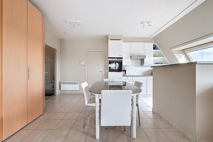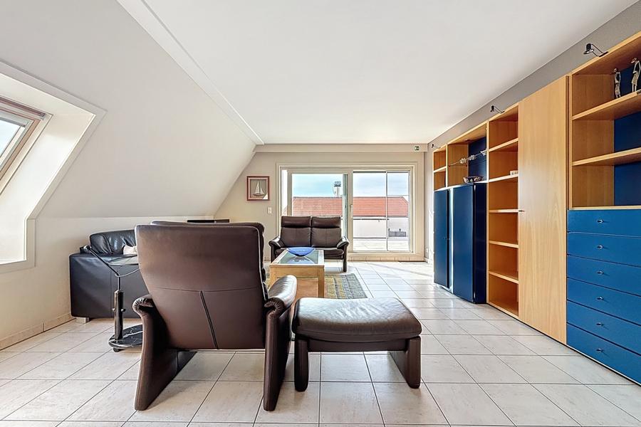 Penthouse clé en main avec terrasse ensoleillée, offrant une vue imprenable sur la réserve de dunes Similiduinen à Nieuwpoort-Bad.L’appartement est entièrement meublé et comprend une cave.Grâce à son emplacement central, vous êtes à distance de marche de la digue, du centre commercial et des transports en commun.À l’intérieur, vous trouverez un hall d’entrée avec toilette séparée, un vaste et lumineux séjour donnant directement sur la grande terrasse, une cuisine ouverte entièrement équipée et deux chambres.L’une des chambres dispose d’une salle de bains attenante avec douche, meuble-lavabo, toilette et raccordement pour machine à laver.Il est également possible d’acquérir un garage dans la même résidence.