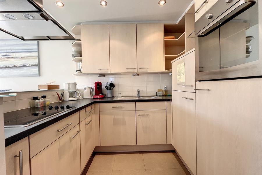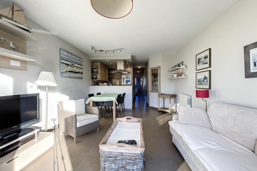 Cet appartement est situé central, et prêt à entrer. L'appartement contient: hall, living avec cuisine équipée, le living donnant sur la terrasse avec vue mer latérale (orientation sud-ouest), WC, salle de bain avec douche et lavabo, chambre à coucher, et hall de nuit avec coin à dormir. Cave privative Ref. Bellrose 401
