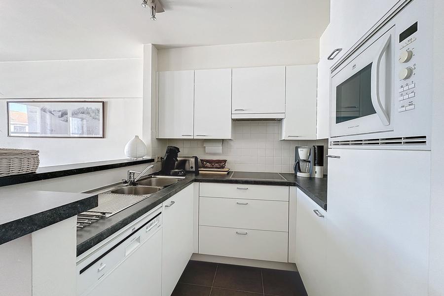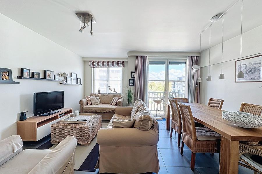 Bel appartement près les commerces, la Digue et la plage. L'appartement se comprend: hall avec WC, living cosy avec terrasse ensoleillée, cuisine équippée, 2 chambres, salle de bains, salle de douche, débarras, 2 ième terrasse ensoleillée. Possibilité d'achat d'un grand garage souterrain (9m50 x 3m) avec un parking supplémentaire.