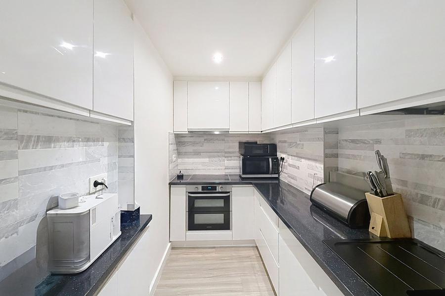 La cuisine indépendante de 6 m², entièrement équipée, complète la partie jour avec fonctionnalité et élégance.