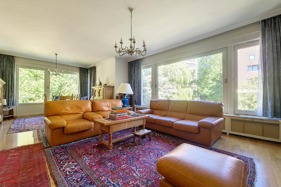 UCCLE : Entre le quartier très prisé De Fré et Messidor, proche des commodités, agréable et lumineux appartement de 115 m² à moderniser situé au 2ème étage sur 3 dans petit immeuble très bien entretenu. Composition : hall d'entrée, salon, salle à manger, cuisine avec accès à la terrasse, hall de nuit, 3 chambres dont 1 avec salle de douche attenante et accès àla terrasse, salle de bains avec wc, wc séparé, cave, ascenseur en conformité. Chauffage collectif au gaz, châssis double vitrage bois, porte blindée, chambre de bonne. PEB : E+ 224 kWhEP/m²/an - Emissions de CO2 : 44. A proximité des transports en commun, commerces et écoles. A visiter sans tarder ! Prix : 420.000 € + possibilité achat garage box fermé 2 voitures pour 55.000 €. Visites et infos uniquement sur rendez-vous CENTURY 21 Bascule 02/340 37 00 ou info@century21bascule.be ou www.century21bascule.be