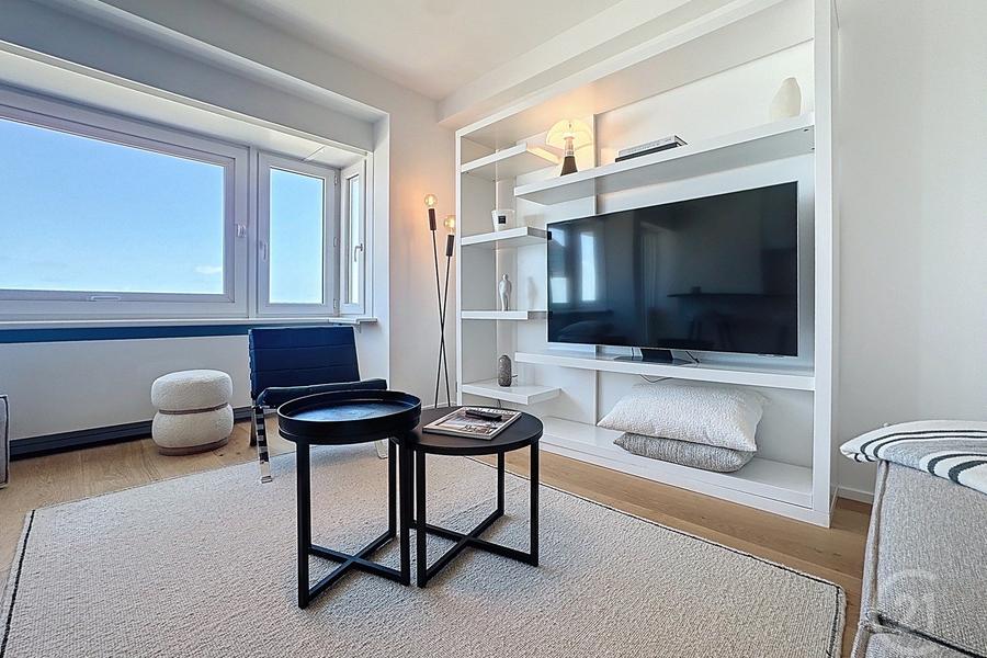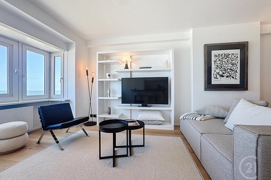Résidence LA PLAYA : Vous êtes à la recherche d'un appartement de deux chambres à coucher prêt à l'emploi sur le front de mer à Westende avec une vue magnifique sur la mer ?D'une superficie totale de 86 m², cet appartement rénové offre un cadre de vie agréable et moderne, décoré avec beaucoup de goût et de manière intemporelle dans des tons doux.L'appartement se compose comme suit : un hall d'entrée spacieux, une salle de séjour lumineuse avec de grandes fenêtres offrant une lumière naturelle abondante et une très belle vue sur la mer. La cuisine ouverte est entièrement équipée de tous les appareils nécessaires et modernes (plaque de cuisson à induction avec hotte aspirante intégrée, grand réfrigérateur, congélateur séparé, réfrigérateur à vin, lave-vaisselle) et d'un coin petit-déjeuner. L'appartement dispose de deux chambres spacieuses, toutes deux dotées de finitions de qualité. La plus petite chambre s'ouvre sur une petite terrasse à l'arrière avec de larges vues sur l'arrière-pays. La salle de bains respire la tranquillité avec son lavabo élégant et sa douche à l'italienne. Toilettes séparées et pièce de rangement supplémentaire avec possibilité d'installer un lave-linge.Il y a également une pièce de rangement privée au sous-sol (n° 8).Cet appartement est l'endroit idéal pour ceux qui recherchent une résidence secondaire prête à l'emploi sur la côte ou un lieu de vie permanent.Ne manquez pas cette opportunité de profiter de ce que la côte belge a de mieux à offrir.L'appartement est vendu non meublé - il est possible de reprendre le mobilier.