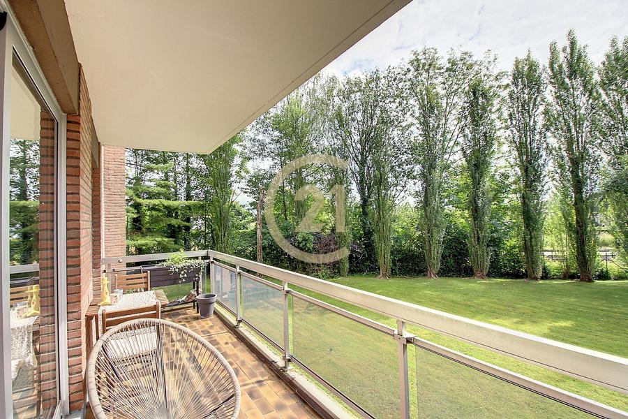 Wezembeek-Oppem. Situé à proximité immédiate des espaces verts et du tram 39 vers Place Dumon. Bel appartement 1 chambre de +/- 60 m² habitables au 1er étage d'un petit immeuble construit en 1973. Il se compose d'un hall d'entrée avec placards et toilette, un lumineux séjour donnant accès vers une agréable terrasse avec vue dégagée, cuisine pouvant être ouverte vers le séjour, une salle de bains, chambre +/- 12m². Double vitrage de 2020, cave et installation électrique conforme. Très belle opportunité. Peb: en cours. Pour plus d'infos et visites Century21 New Home: 02/880.21.21. Annonce non contractuelle, sous réserve de modification. Superficies à titre indicatif.