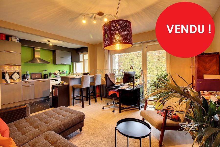 ************VENDU AU PRIX ****************Woluwe-St-Lambert. Quartier Tomberg. Bel appartement 2 chambres de 60m² en excellent état situé au 3ème et dernier étage d'une petite copropriété sans ascenseur. Il se compose d'un hall d'entrée avec toilette, une salle de bains, un séjour de 25m² avec cuisine USA équipée le tout donnant accès vers une terrasse Sud, 2 chambres (11,5m² et 9m²). Double vitrage pvc, installation électrique aux normes jusqu'en 2036, cave et grenier de rangement. Peb: en cours. Libre à l'acte. Chaudière collective. Immeuble sans charges. Précompte immobilier: 720€. Proche des transports en communs, commerces et écoles. A ne pas rater! Infos et visites avec agence Wolu Home: 02/880.21.21
