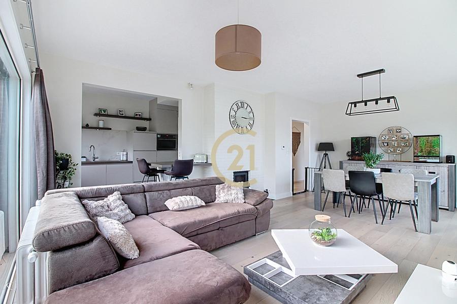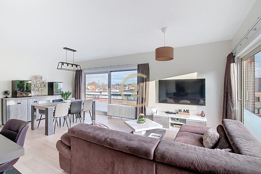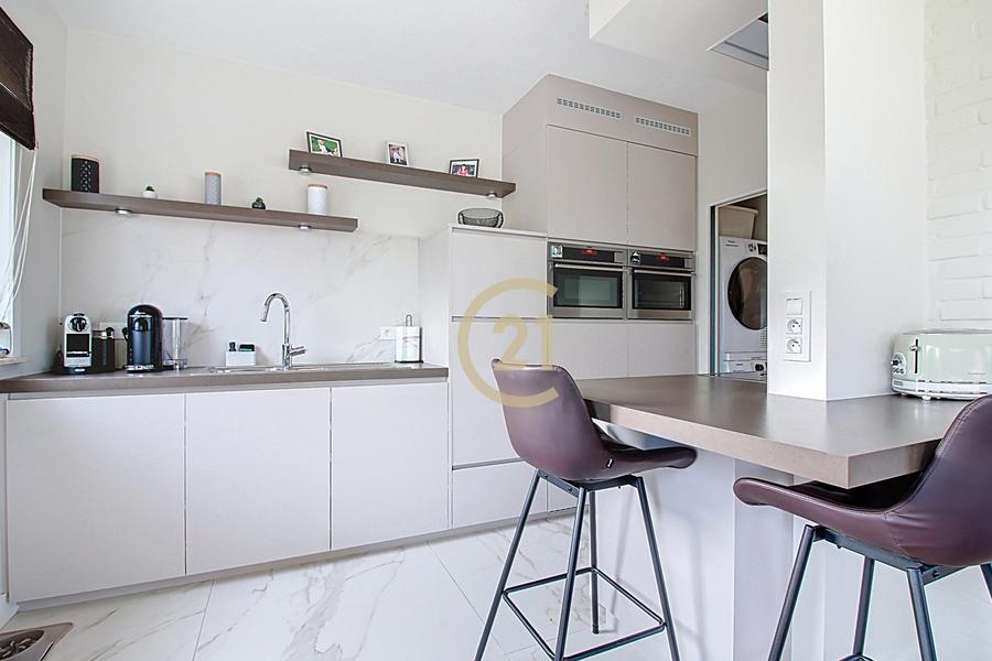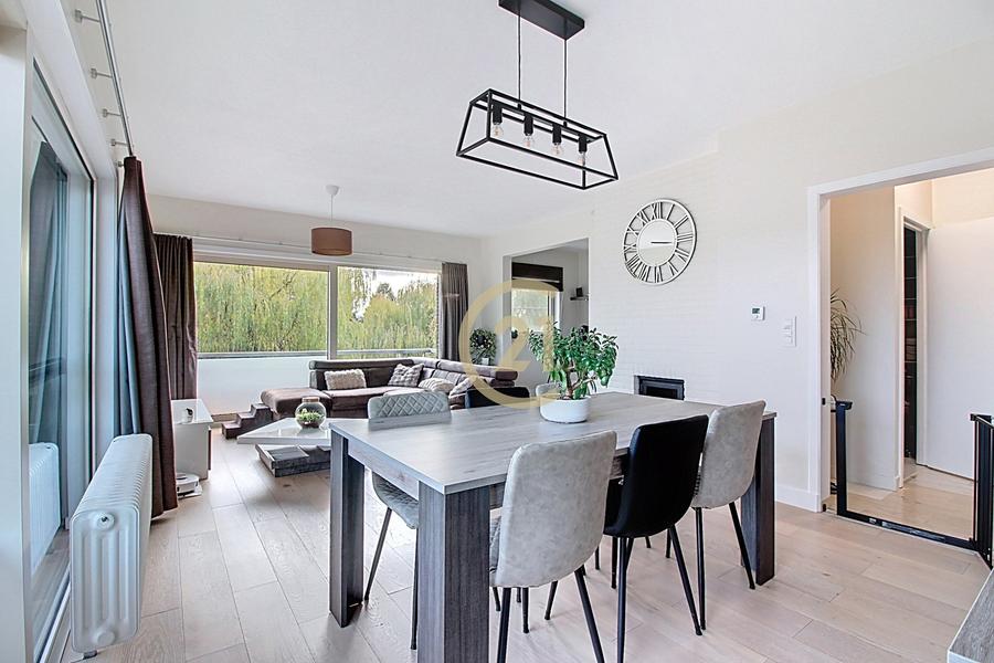 Bel appartement 2 chambres de 90 m² entièrement rénové en 2017 situé dans un petit immeuble construit en 1976 avec ascenseur. Il se compose d'un vaste hall d'entrée avec placards, chaufferie et toilette, deux chambres (11m² et 14m²), une belle salle de douches italienne, une buanderie/réserve, un lumineux séjour avec cuisine full équipée semi-ouverte de 38 m². Terrasse de 11m² Sud-Est. Double vitrage aluminium récent, installation électrique conforme, chaudière individuelle à condensation gaz récente, cave et un garage box (+20.000€). Peb: B. Pour plus d'infos Century21 New Home: 02/880.21.21. Annonce non contractuelle, sous réserve de modification. Superficies à titre indicatif.