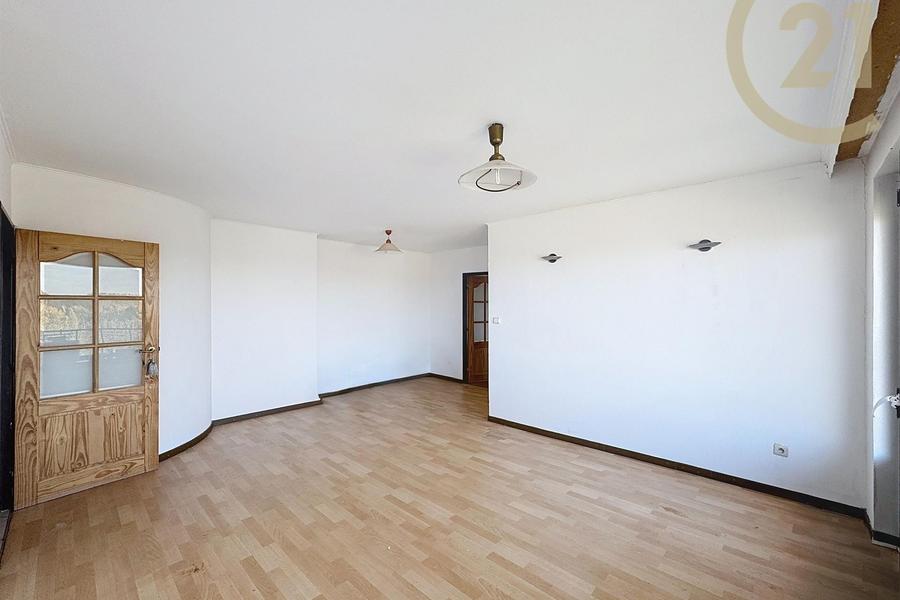 Le séjour se distingue par de grandes baies vitrées qui apportent une abondante lumière naturelle. La cuisine peut être entièrement rénovée selon vos goûts. L’appartement comprend également deux chambres spacieuses avec accès direct à la terrasse, une salle de bains avec baignoire, des toilettes séparées et une cave pratique.