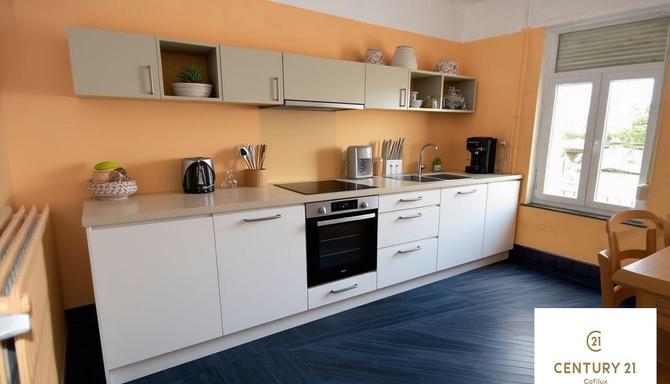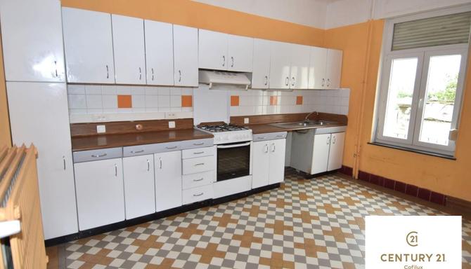 Aubange, à deux pas de la France (Mont St-Martin) et à deux pas du Luxembourg (Rodange), Century 21 Cofilux a la plaisir de vous proposer cette charmante maison de ville 4 façades sur un terrain de +/- 7 ares exposé N-O. La maison se compose comme suit: hall d'entrée, bureau/chambre, salon-salle à manger, cuisine, débarras et Wc. 1er Etage: Hall de nuit, 3 chambres (16,16 et 17 m²) et une salle de bain. Grenier avec plancher isolé aménageable en 2 chambres. Les séparations des niveaux sont en bois, les châssis en PVC DV, le chauffage (2013) est au mazout. L'installation électrique est en conformité. Les PEB est E (424 kWh/m².an - 84.468 kWh/an - 20250821018325). Tout y est pour rendre la vie agréable dans la maison : cave, coure, long jardin, allée latérale privée donnant accès au garage. La toiture a été entièrement révisée, la charpente est en bonne état. La maison est idéale pour les familles nombreuses.