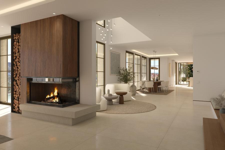 L'emplacement du terrain est particulièrement calme, sans aucun bruit de circulation, et se trouve sur une position surélevée qui offre à la fois la proximité et la vue sur la forêt, la mer et le terrain de golf. Cette villa sera construite dans un mélange de styles andalou et contemporain, ce qui lui permettra de s'adapter de manière optimale à la climatologie et à la tradition locales, tout en bénéficiant de la lumière et du confort des espaces ouverts. Ce sera une maison qui se fondra dans la forêt environnante, mais avec des vues panoramiques et une lumière abondante. Bien entendu, toutes les installations modernes seront prévues, telles que des fenêtres et des portes de qualité supérieure, le chauffage au sol, une excellente climatisation, une cheminée, une cave à vin, une piscine chauffée, un espace barbecue, des panneaux solaires, la domotique, un système de filtration de l'eau, la préinstallation d'un ascenseur, etc.La maison sera construite sur deux étages avec 550 m² d'espace intérieur, environ 220 m² d'espaces de vie extérieurs et une piscine de pas moins de 80 m². Le premier étage est l'étage d'entrée et dispose d'un hall d'entrée spacieux avec une vue magnifique sur la mer et la forêt. On y trouve également les toilettes pour invités et l'ascenseur. À cet étage, il y a 3 chambres, toutes avec salle de bains attenante, la chambre principale bénéficiant en outre d'un impressionnant dressing.Le rez-de-chaussée offre une chambre double supplémentaire avec salle de bains attenante et un grand espace de vie ouvert comprenant un salon, un coin salon, une salle à manger et une cuisine. Ces espaces donnent directement accès à la terrasse et à la piscine et bénéficient d'une vue magnifique.