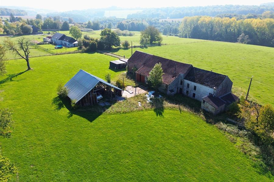Venez découvrir ce superbe corps de ferme à rénover, ses granges et son écurie 6 box entourés par la nature, idéalement situés à quelques minutes à peine des Lacs de l'Eau d'Heure.