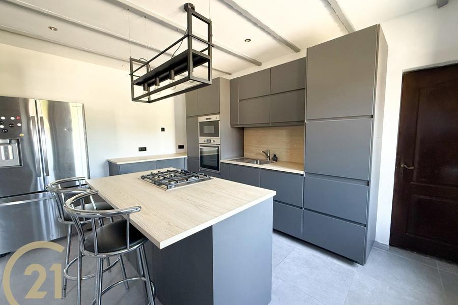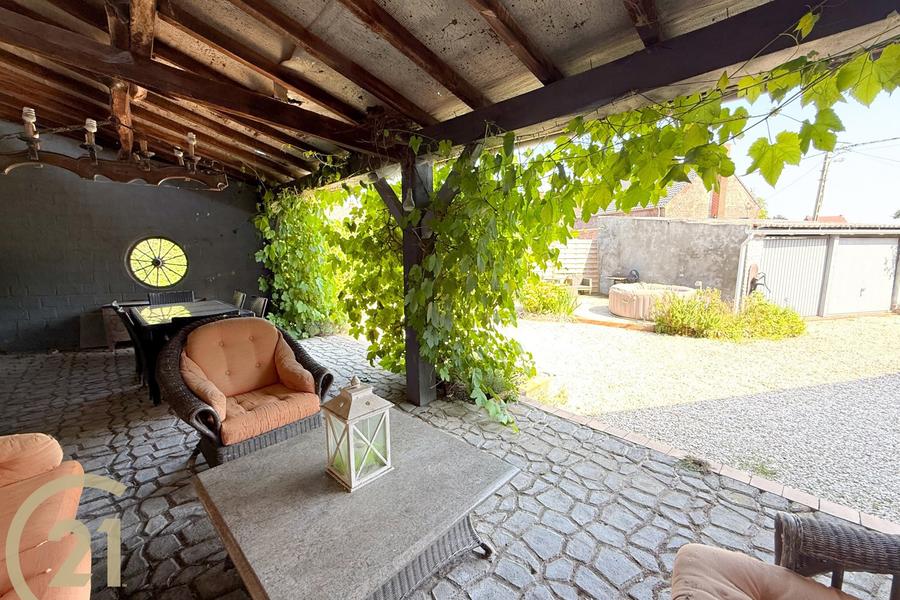 REF : QR2018 – Dans l’entité de Laplaigne, non loin du Grand Large, charmante longère de ±196 m² habitables implantée sur un terrain de 1.158 ca/m² comprenant au rez-de-chaussée une cuisine équipée, salle à manger, salon avec coin bar, bureau, pergola, chaufferie et deux garages dont un avec fosse (à rénover). Au 1er étage : un hall de nuit dessert trois chambres et une salle de douche, tandis que le grenier offre un bel espace de rangement. Divers/technique : chauffage central au mazout, compteur bi-horaire, jardin d’agrément avec terrasse de ±30 m², pergola et espace de parking en front à rue. Informations administratives : RC : 213 euros, PEB label D - Espec : 293 kWh/m².an - Etotal : 57.423 kWh/an - Numéro : 20170410012713. Si vous recherchez une longère avec 3 chambres, bureau, 2 garages et jardin, ne cherchez plus ! Contactez-nous au 069/21.21.71 avec la référence QR2018 – descriptif et photos non contractuels – tous nos biens sont à découvrir sur www.century21allin.be.