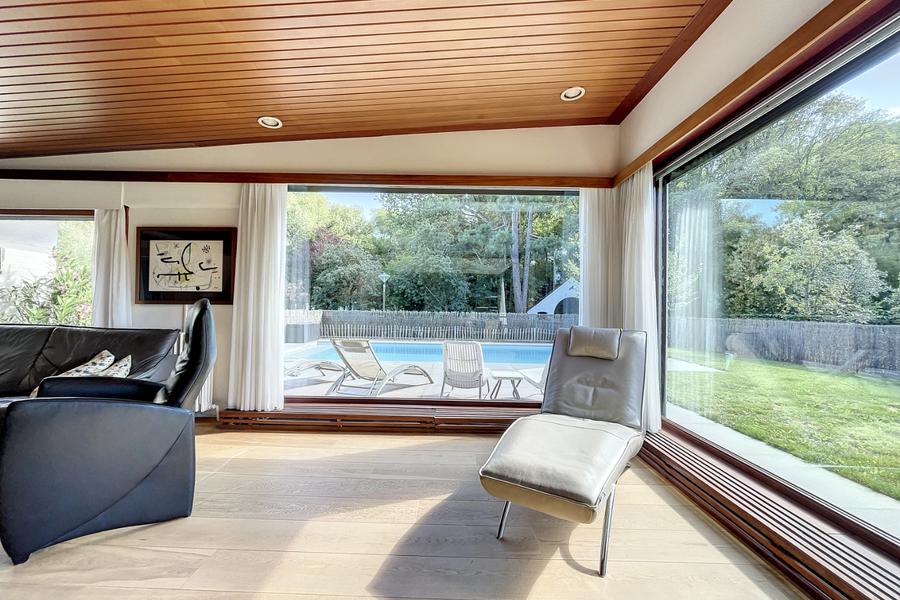 Villa vintage avec situation très calme, à distance de marche de la plage et du centre de La Panne. La villa comprend: bel entrée,un espace bureau, un salon avec salle à manger donnant sur la terrasse avec piscine (année 2021), une cuisine, deux chambres et une salle de bains (RDC). Niveau -1 : deux chambres, espace polyvalente, garage et cave. La toiture et la façade ont été rénovées en 2021, les panneaux solaires (24) datent de 2020. Le jardin et la piscine ont été installés en 2021. Ref. D-54