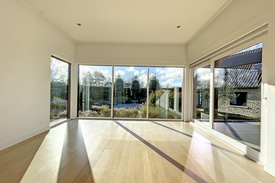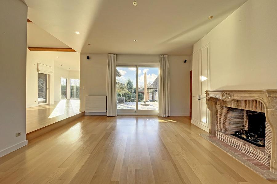 Cette villa spacieuse et ensoleillée est située tout près de la réserve naturelle et à qq minutes de la plage. La maison a été construite en 1996 avec des matériaux de haute gamme. Composition: hall d'entrée avec wc, salon spacieux avec feu ouvert, salle à manger avec vue sur le jardin, cuisine entièrement équipée, buanderie. Premier étage : chambre spacieuse avec dressing et salle de bain très spacieuse. Sous-sol : cave à vin, double garage. Dépendance : hall d'entrée avec toilette, deux chambres avec une salle de bain (RDC), cuisine équipée avec salon et salle à manger. A l'étage : local technique et très grande chambre / salle polyvalente. Terrasse ensoleillée avec jardin. Ref. D-57
