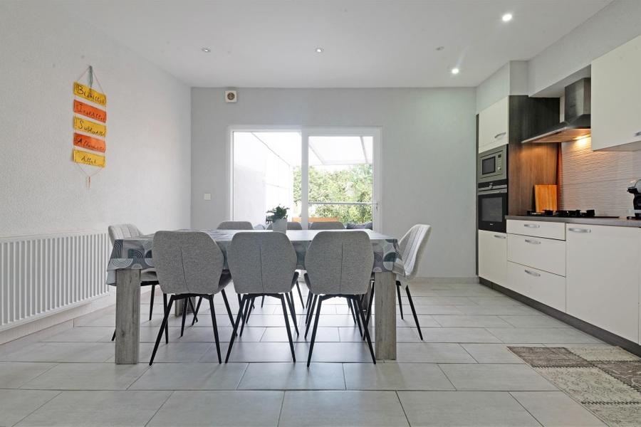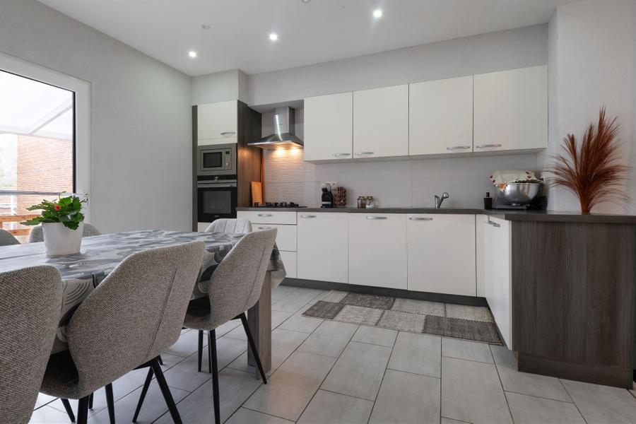 Cette habitation se trouve à distance de marche de l’école primaire, d’un grand magasin de quartier, d’une boucherie, d’une pharmacie et d’une banque. Elle offre un espace de vie de 145 m² sur un terrain de 293 m². Avec 4 chambres, elle convient parfaitement à une famille ou pour aménager un espace de télétravail. Dès l’entrée, on est accueilli par un espace de vie lumineux et chaleureux, grâce aux grandes fenêtres et à une finition moderne. Le spacieux salon s’intègre harmonieusement à une cuisine élégante et bien équipée. La maison dispose de quatre chambres, dont une au rez-de-chaussée et trois à l’étage, ainsi qu’un grenier aménageable accessible par un escalier fixe. Les salles de bains sont équipées d’un lavabo et d’une douche à l’italienne, conçues avec un souci du confort et du style. À l’extérieur, une agréable terrasse invite à la détente, avec un accès direct à la pelouse et à l’abri de jardin, qui est également accessible depuis la rue. En résumé, cette maison pleine de charme représente une opportunité unique pour ceux qui recherchent un lieu de vie convivial et fonctionnel. Laissez-vous séduire par le confort de vie qu’elle propose et les nombreuses possibilités d’aménagement. Ne ratez pas cette chance et planifiez votre visite dès aujourd’hui !
