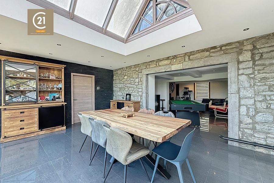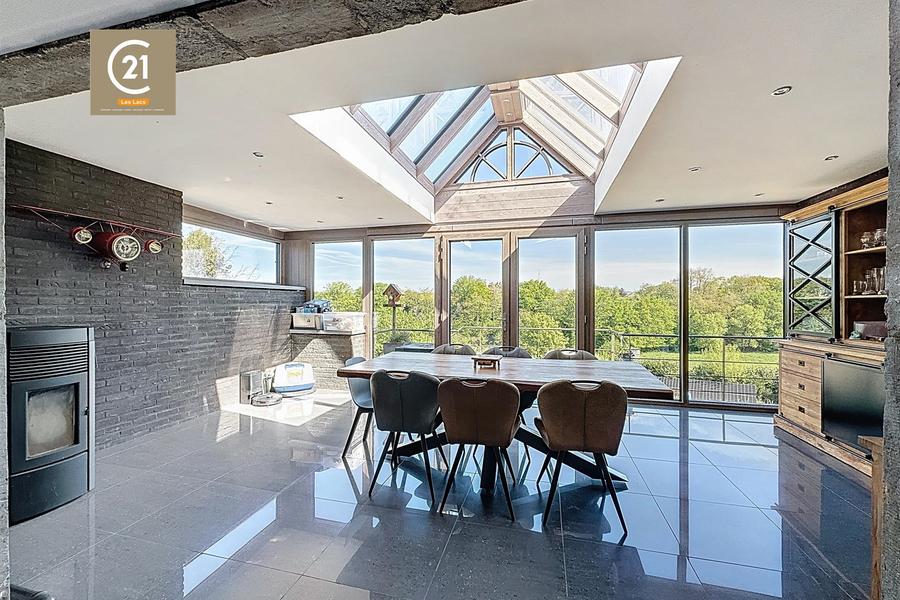 La maison dispose également de 14 panneaux photovoltaïques, Châssis double vitrage PVC, Chauffage central mazout, Poêle à pellets,...