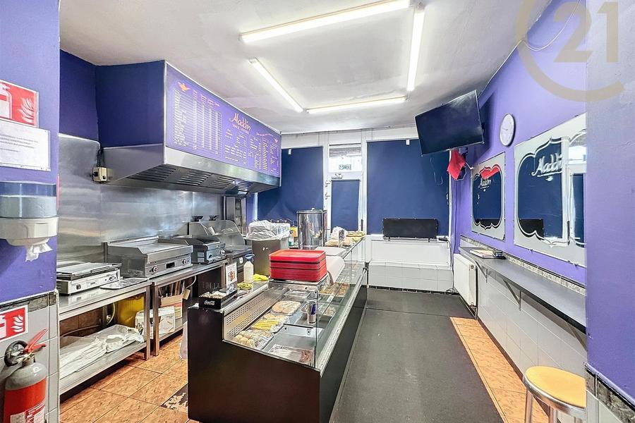 Le rez-de-chaussée commercial comprend une friterie équipée avec deux salles, comptoir, bar, sanitaires et cour. Cet espace d’environ 130 m² est loué à un exploitant en place pour 1 370 € par mois, assurant un revenu locatif immédiat et stable.