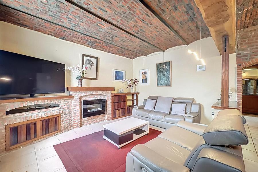 Le rez-de-chaussée se compose d'un spacieux séjour agrémenté d'un superbe plafond en voussettes, dune cuisine entièrement équipée, dune buanderie avec douche ainsi que d'un WC séparé.