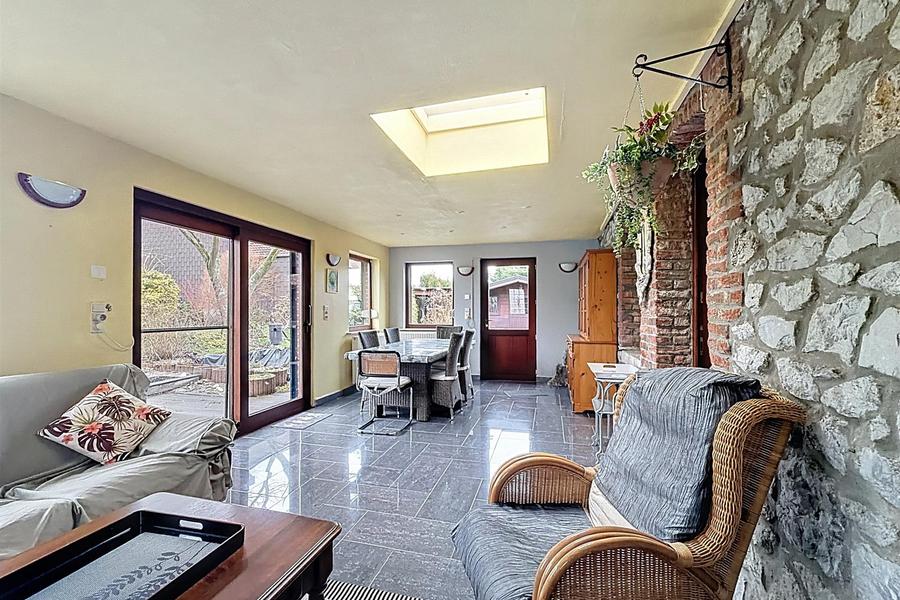 À l'arrière, une belle véranda prolonge agréablement l'espace de vie et offre un accès direct à la terrasse et au jardin.